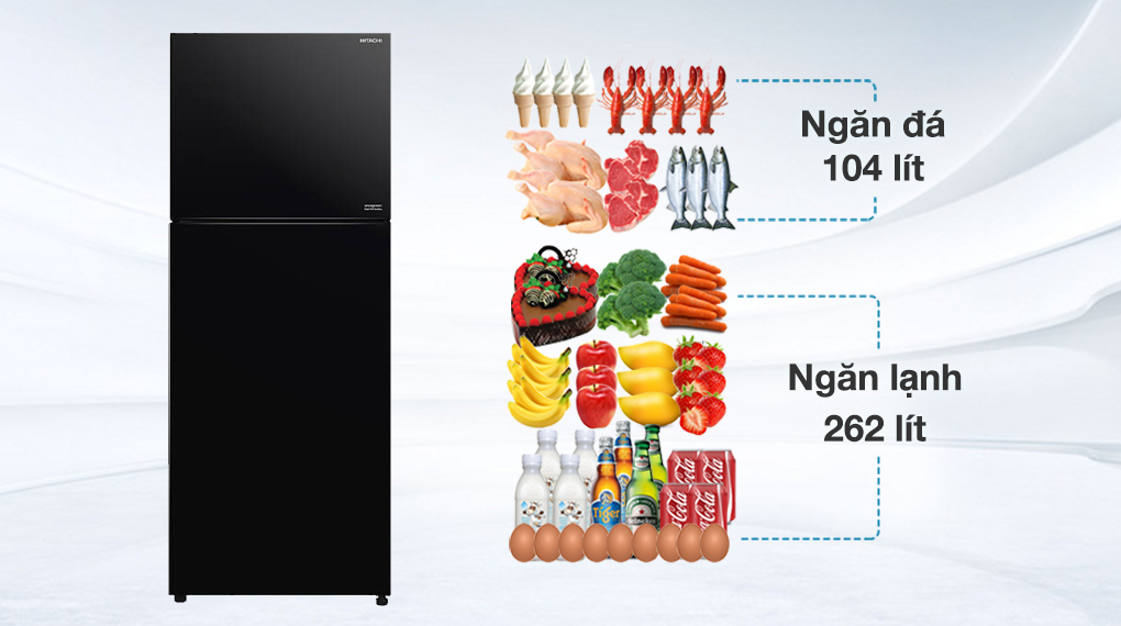 – Ngăn đá dung tích 104 lít, thiết kế có kệ, khay chứa ở phần thân và cửa tủ cho bạn tiện sắp xếp thực phẩm đông lạnh theo thói quen của mình.
