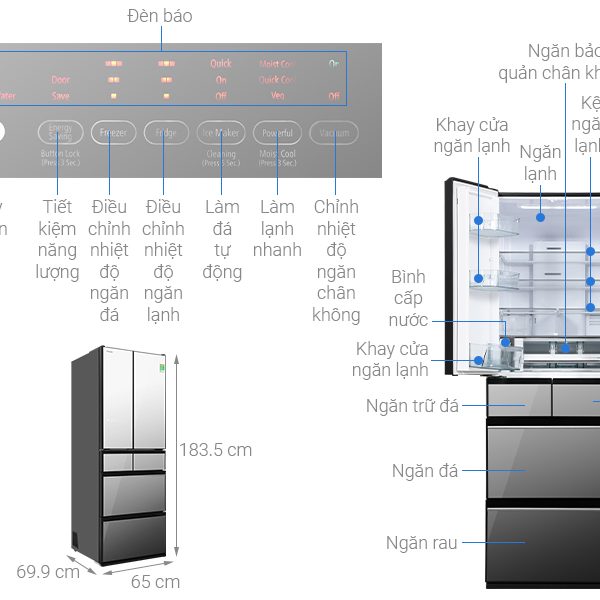 sở hữu dung tích lớn nhưng vẫn tiết kiệm điện vượt trội nhờ trang bị công nghệ làm lạnh tái tạo băng, Inverter và tấm cách nhiệt chân không. Để duy trì được độ tươi ngon, hương vị của thực phẩm, tủ lạnh tích hơp ngăn chân không và ngăn thông minh Aero-care.