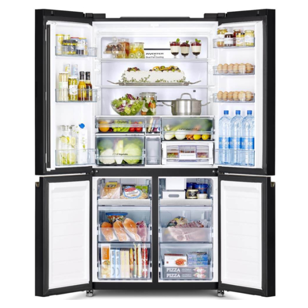 – Kiểu dáng: thuộc dòng tủ lạnh Multi Door trang bị 4 cánh cửa với chất liệu mặt kính sáng bóng. Thiết kế phẳng kết hợp cùng tông màu xám thanh lịch mang đến vẻ ngoài sang trọng, thời thượng từ mọi góc nhìn cho sản phẩm và không gian nội thất của gia đình.
