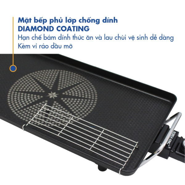 Mặt nướng của vỉ lớn Korea King KGS-268 được phủ men chống dính cao cấp Diamond Coating siêu bền và an toàn cho sức khỏe người sử dụng. Đặc biệt, lớp chống dính còn giúp bạn lau chùi vỉ nướng một cách dễ dàng.